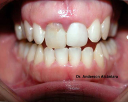 Instalação de seis implantes inferiores e prótese fixa do tipo protocolo inferior de porcelana. |